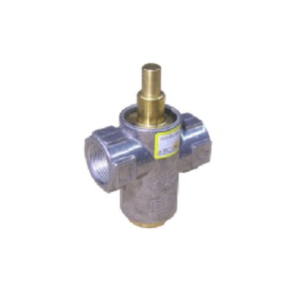 Válvula de seguridad de llama a termocupla para gas de baja presión (máximo 0,18 bar) con salida para piloto.